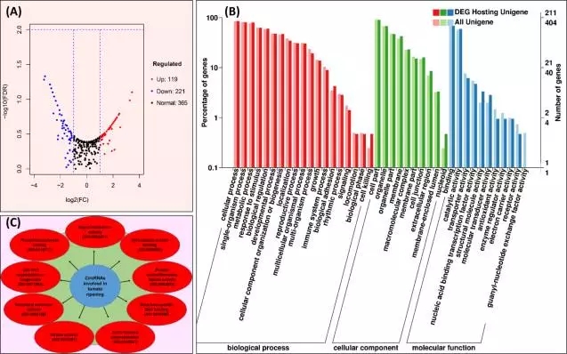 (C):番茄果實(shí)成熟過(guò)程中circRNA顯著富集的GO terms.