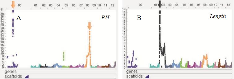 圖2? ? ? A)果實酸度和? ? ?B)果實長度定位結(jié)果展示