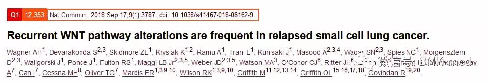 ? ? ? 近日,Alex H. Wagner等研究者發(fā)表在“NATURE COMMUNICATIONS”上的文章中,作者通過高通量測序?qū)CLC的化療耐受性的分子機(jī)制進(jìn)行了研究,作者對(duì)12例來自處于診斷時(shí)期和復(fù)發(fā)時(shí)期的患者的配對(duì)SCLC腫瘤樣本,以及18例患者的非配對(duì)復(fù)發(fā)樣本,進(jìn)行全外顯子組測序。在復(fù)發(fā)樣本鑒定到了多個(gè)體細(xì)胞拷貝數(shù)變異,包括ABCC1的增加,以及MYCL、MSH2MSH6的缺失。作者還對(duì)30例患者中18例復(fù)發(fā)樣本進(jìn)行了腫瘤RNA測序。結(jié)果表明,ASCL1低表達(dá)亞型和WNT激活在復(fù)發(fā)樣本中富集。通過敲低APC激活化療敏感性SCLC細(xì)胞系中的WNT信號(hào),可以誘導(dǎo)產(chǎn)生化療耐受性。此外,體外誘導(dǎo)的耐化療細(xì)胞系中,WNT活性增加??偟膩碚f,此研究結(jié)果表明WNT信號(hào)激活是復(fù)發(fā)性SCLC化療耐受性的一種分子機(jī)制。