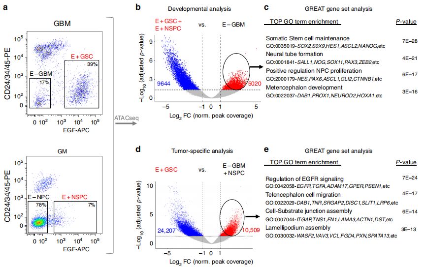 通過(guò)熒光激活細(xì)胞分選術(shù)(FACS)從GM和GBM組織中分離的細(xì)胞GSC(EGF+/-)、NSPC(EGF+/-),分別進(jìn)行ATAC-seq。
