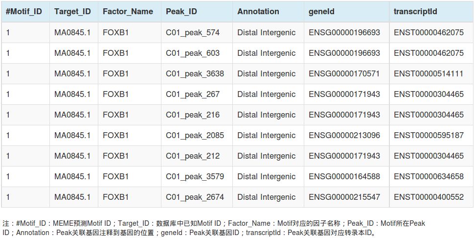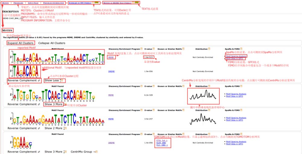 我們根據(jù)實(shí)際需求,從MEME-ChIP的原始分析結(jié)果中提取了精華,提供了較為全面完整的分析結(jié)果: