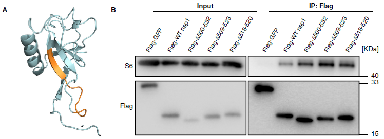 SARS-CoV-2 Nsp1的C端結構域與40S核糖體亞基結合并干擾mRNA的進入,但實驗發(fā)現突變的SARS-CoV-2 Nsp1保留了與40S核糖體亞基的結合能力(圖5B)。