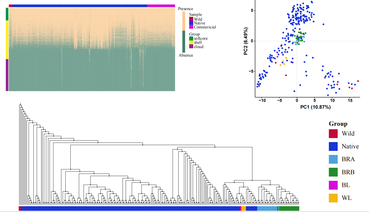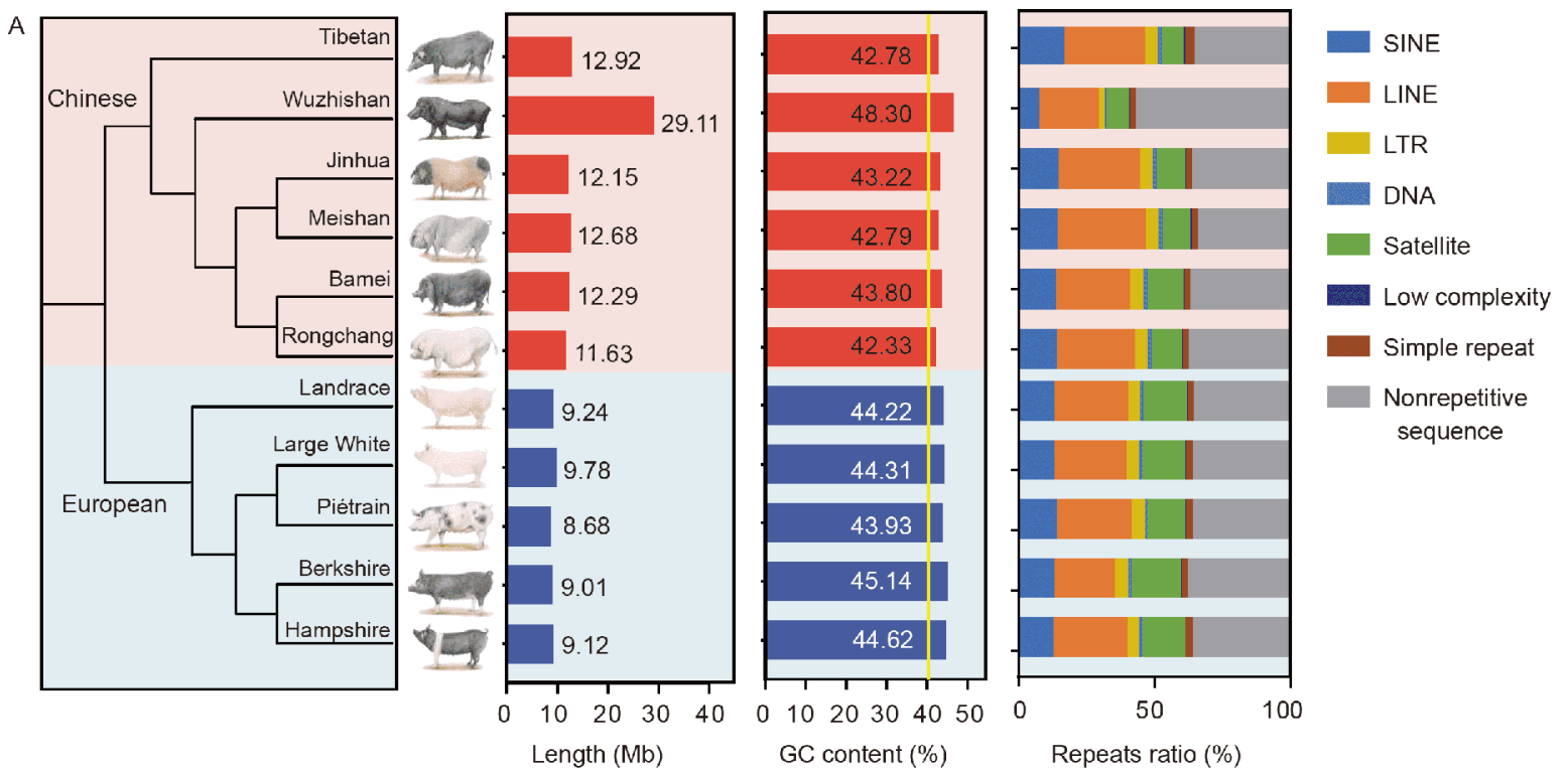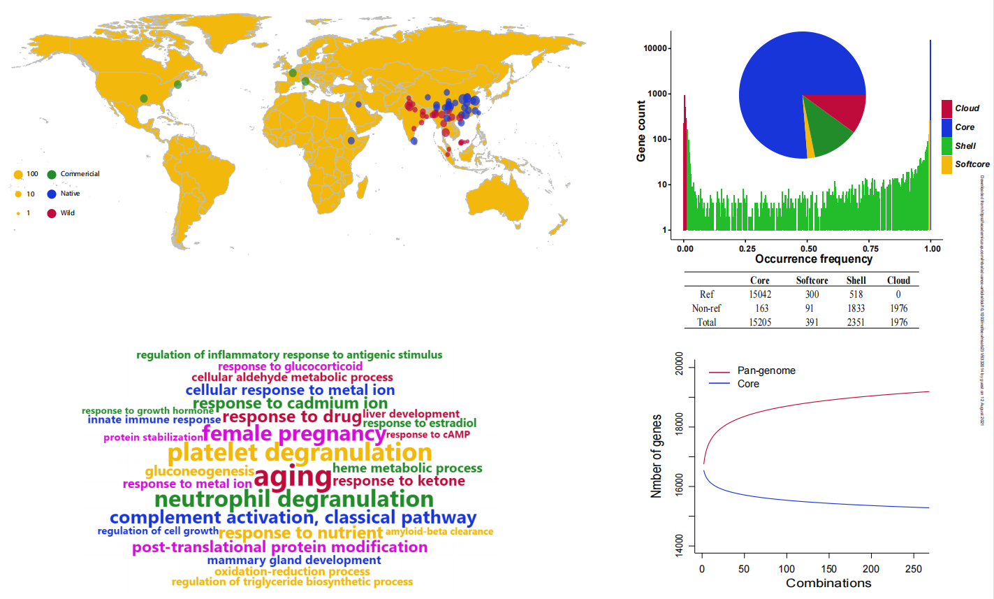 - 對(duì)于一些農(nóng)業(yè)畜牧養(yǎng)殖相關(guān)的動(dòng)物,往往由于人工的干預(yù)或是自然環(huán)境的選擇,在同一個(gè)種內(nèi)水平下會(huì)有非常多的品系/亞種/變種。這些馴化前后的群體間表型和基因型的巨大差異可能隱藏在每個(gè)品系基因組種,因此能體現(xiàn)這些動(dòng)物品系內(nèi)的共性又能體現(xiàn)不同品種間差異的泛基因組就顯得尤為重要。