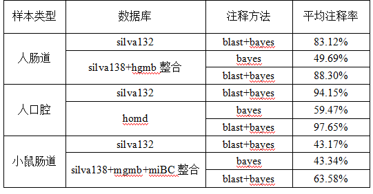 表2.全長擴(kuò)增子物種水平注釋率統(tǒng)計(jì)