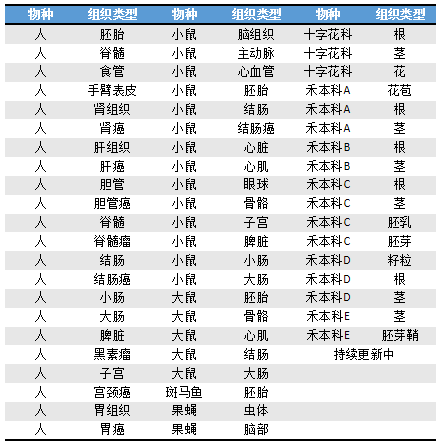 ? ? ? ? 空間轉(zhuǎn)錄組最先開始應用于人和鼠,其經(jīng)驗也是最成熟,文章報道也是最多的,百邁客目前開展的項目主要以人、小鼠、大鼠物種最多,已經(jīng)積累相當足的經(jīng)驗,可以在常規(guī)器官組織和腫瘤上開展空間轉(zhuǎn)錄組項目,也積累很多非人鼠物種的經(jīng)驗,一起來看看百邁客在動植物上開展的項目情況。