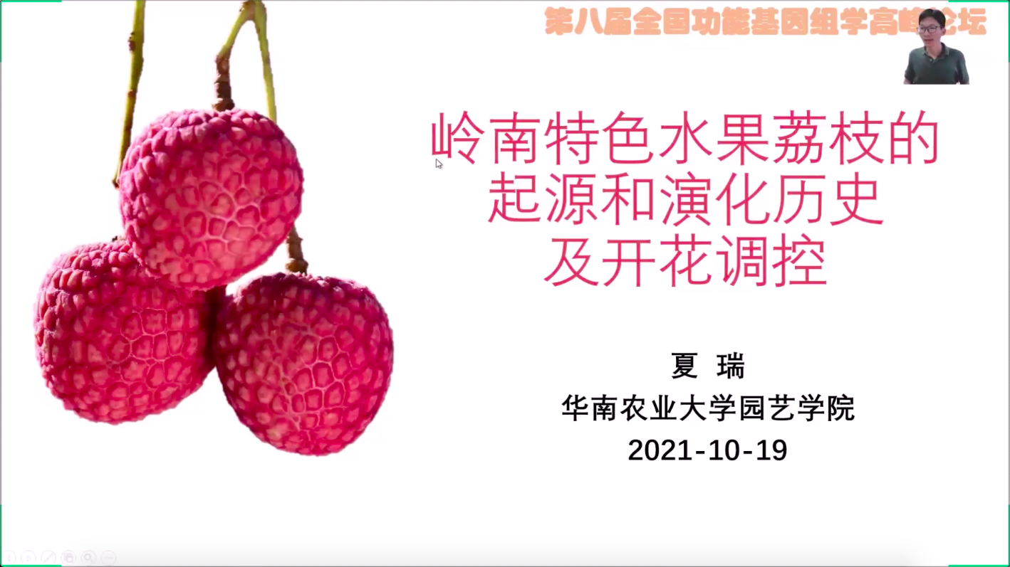 華南農(nóng)業(yè)大學(xué)夏瑞教授對嶺南特色水果荔枝的起源、演化歷史及開花調(diào)控進行了闡述,展示了無患子科荔枝“妃子笑”單倍型基因組的構(gòu)建與荔枝的演化分析,并介紹了72份荔枝種質(zhì)資源的重測序研究,表明栽培荔枝可能起源于兩條獨立的馴化事件;另外,還闡述了荔枝開花相關(guān)基因的研究,表示這些關(guān)于荔枝基因組和馴化歷史的結(jié)果必將加速荔枝及其它相關(guān)無患子科植物的基礎(chǔ)研究和遺傳改良。