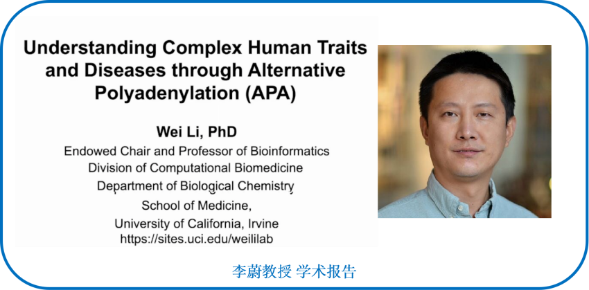 貝勒醫(yī)學(xué)院李蔚教授介紹了Understanding Complex Human Traits and Diseases through Alternative Polyadenylation (APA)。在該項研究中,建立了3’UTR可變多聚腺苷酸化(APA)數(shù)量性狀位點(3’aQTLs)的概念,3’aQTLs圖譜有望將APA作為一種新興的重要分子表型來解釋大部分GWAS(全基因組關(guān)聯(lián)研究)風(fēng)險SNPs,從而為APA和APA相關(guān)易感基因在人類特征和疾病中的遺傳基礎(chǔ)提供重要的生物學(xué)見解。