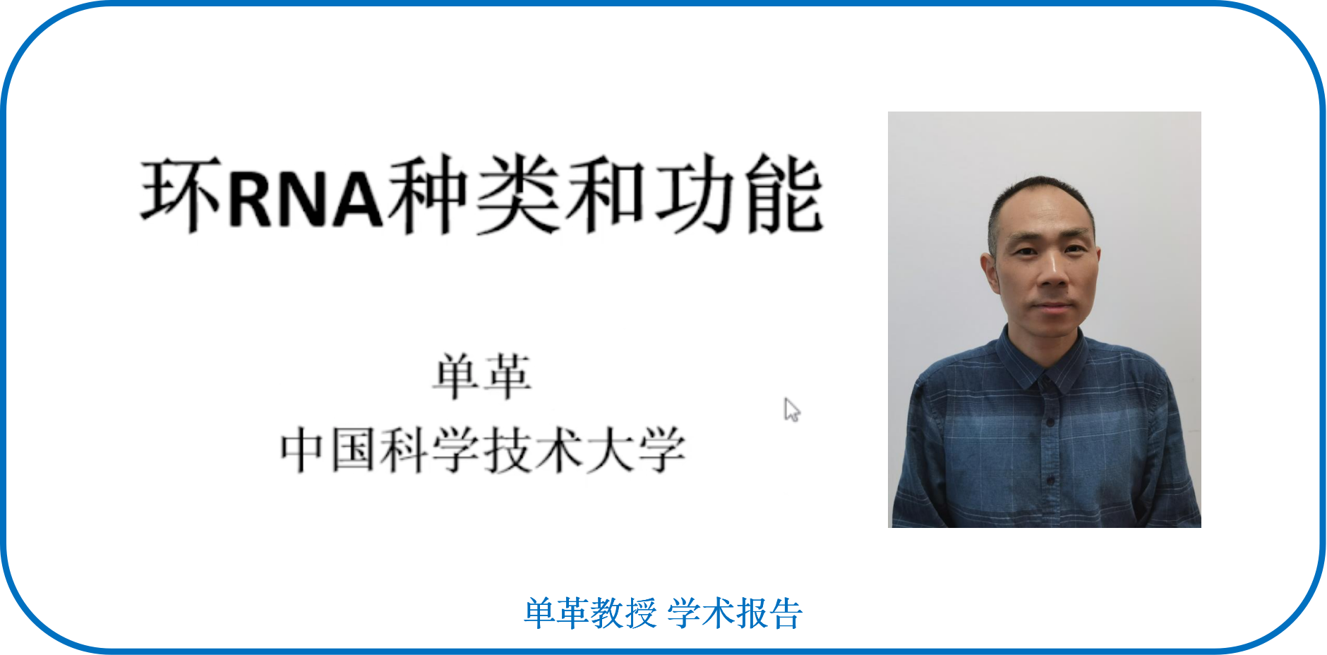 中國科學(xué)技術(shù)大學(xué)生單革教授講解了環(huán)RNA種類和功能。單老師實驗室發(fā)現(xiàn)并命名了多種circRNA,例如由線粒體編碼的環(huán)RNA (mecciRNAs)、從果蠅到人保守的外顯子環(huán)RNA(circBoule RNAs);還合作研究了另一個外顯子環(huán)RNA(circURI1)發(fā)現(xiàn)其通過與hnRNPM蛋白互作來調(diào)控可變剪接,從而抑制胃癌轉(zhuǎn)移。