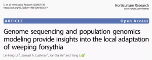 主要內(nèi)容:該研究以藥用作物連翹為研究對象,通過Nanopore平臺測序數(shù)據(jù)組裝了737.47 Mb的高質(zhì)量連翹基因組。并對15個連翹自然種群進(jìn)行全基因組比較分析,找到了與本地適應(yīng)相關(guān)的太陽輻射、溫度和降雨等變量相關(guān)候選基因。該研究為連翹從野生種群篩選優(yōu)良種質(zhì)資源提供了遺傳資源和理論參考。