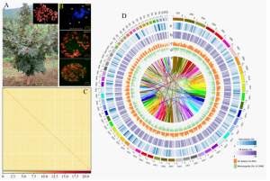 主要內(nèi)容:通過PacBio測序平臺完成733.32 Mb“大五星”枇杷基因組的構(gòu)建,并對52個枇杷品種(包括16個白肉變種和36個黃肉變種)進(jìn)行重測序分析,同時,使用UPLC-ESI-MS/M系統(tǒng)測定了的花、葉和根代謝組。通過GWAS分析鑒定了一些與枇杷的果肉顏色關(guān)聯(lián)的SNPs。