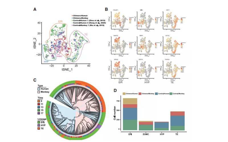 圖1 人猴嵌合胚胎的單細胞轉(zhuǎn)錄圖譜