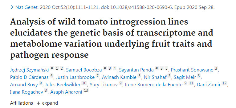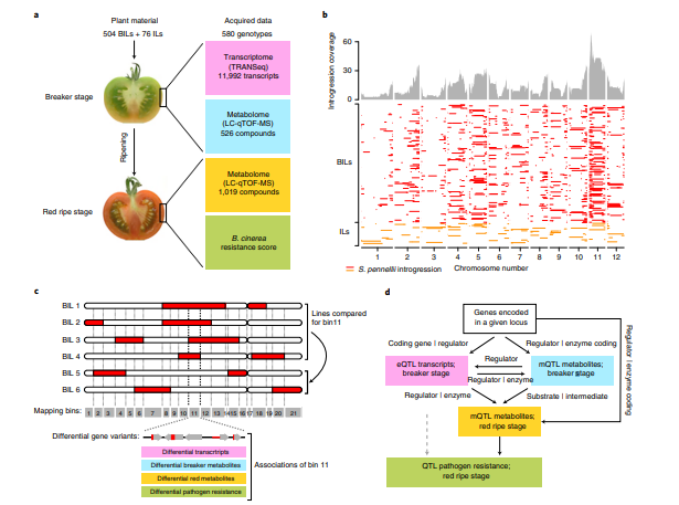 利用野生番茄漸滲系闡明轉(zhuǎn)錄組和代謝組變異對果實性狀和病原菌響應(yīng)的遺傳基礎(chǔ)的潛在影響