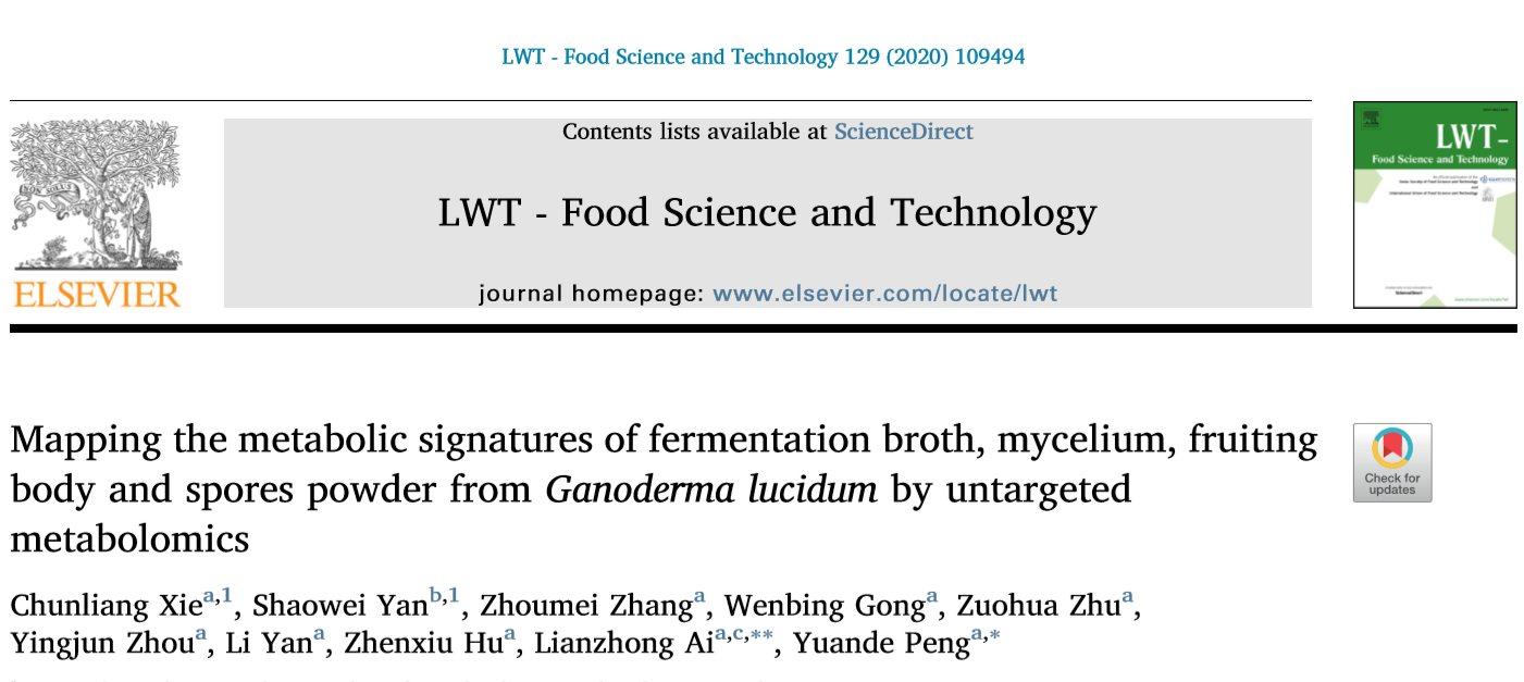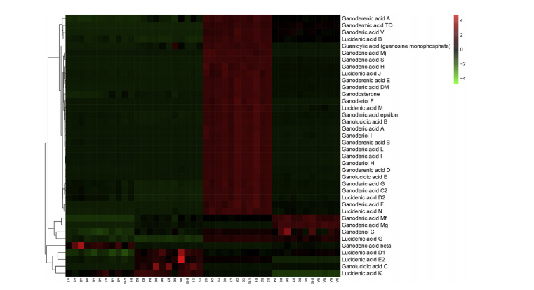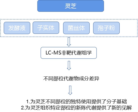 研究結(jié)果:這項研究運用靈芝的不同部分,通過非靶向代謝組學研究靈芝不同部位的功能和藥效。根據(jù)非靶向代謝組學的結(jié)果,得出子實體可以特別用作抗腫瘤和抗艾滋病藥物;孢子粉可用于開發(fā)治療肝病和糖尿病的藥物;靈芝的四個部分可用于抗氧化劑領(lǐng)域。本研究為靈芝的質(zhì)量評價和綜合利用提供了理論依據(jù)。