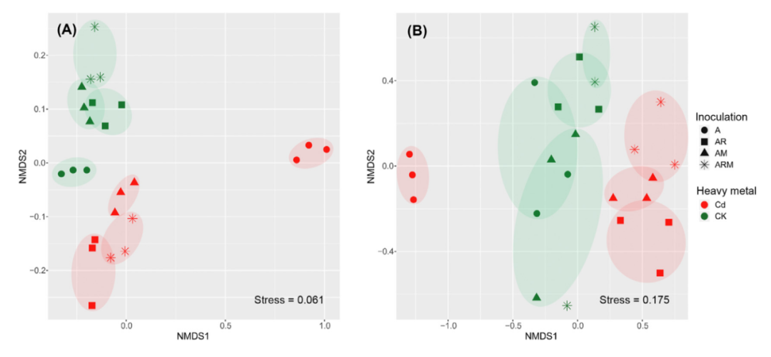 根瘤菌和叢枝菌根真菌(AMF)是重要的共生微生物,對生長在金屬污染土壤中的植物有利。然而,目前仍不清楚接種的微生物如何影響根際微生物群落,或者根際微生物群落的后續(xù)變化是否有助于提高金屬脅迫下的植物抗性。
