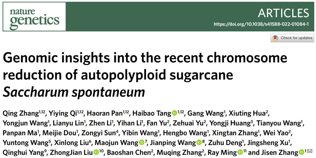 福建農(nóng)林大學海峽聯(lián)合研究院基因組中心張積森課題組博士生張清(目前中國農(nóng)科院深圳農(nóng)業(yè)基因組研究所工作)、齊浥穎、碩士生潘浩然和基因組中心唐海寶教授為論文共同第一作者,基因組中心張積森教授為通訊作者。張積森教授團隊長期從事以甘蔗基因組學與分子育種研究,該成果是基因組中心團隊在甘蔗領域發(fā)表的第2篇Nature Genetics論文,作為近60年以來發(fā)表研究刊物高的甘蔗論文,該研究將進一步奠定我國在甘蔗基礎研究領域的學術地位。
