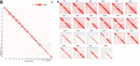 Hi-C檢測每個常染色體上染色體內(nèi)和染色體間的互作