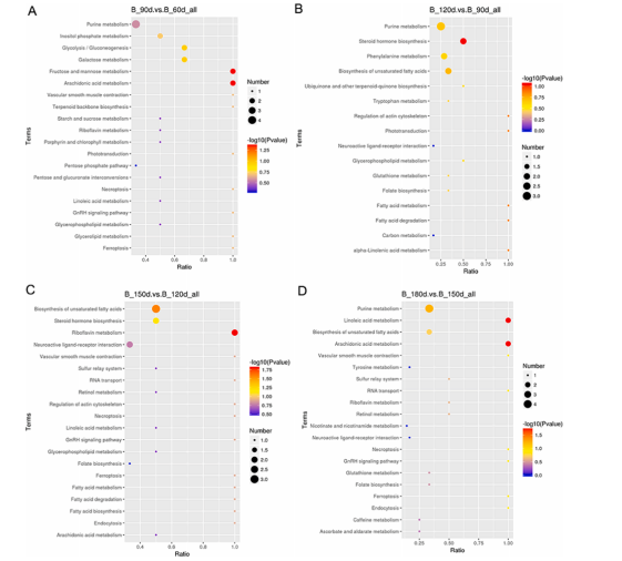 雞胸肉代謝受日齡影響的主要途徑是果糖和甘露糖代謝、花生四烯酸代謝、甾體激素生物合成、核黃素代謝、不飽和脂肪酸生物合成和亞油酸代謝。