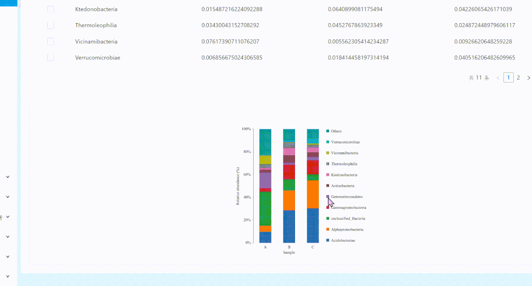 百邁客微生物多樣性(擴增子)線上分析共擁有20+種基本分析,40+種個性化分析;宏基因組線上分析共擁有20+種基本分析,30+種個性化分析。在這里,展示3款交互式個性化: