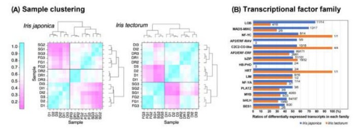 蝴蝶花(IJ):利用Illumina平臺對FG、DI、D、DR、SG階段的樣本進(jìn)行測序,并進(jìn)行從頭組裝,為蝴蝶花生成參考轉(zhuǎn)錄組。
