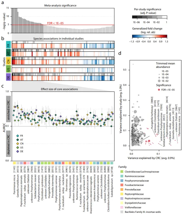 圖2-宏基因組分析確定與結(jié)直腸癌密切相關(guān)的核心腸道微生物