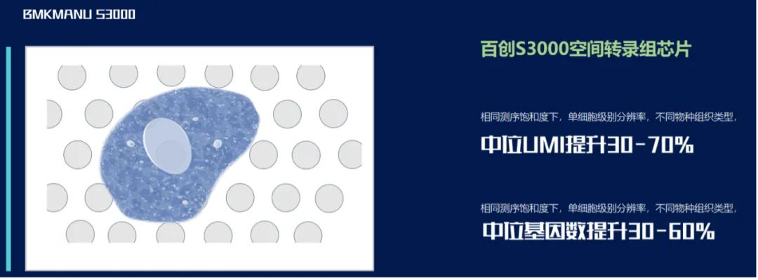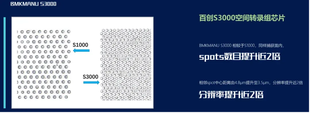 相較于現(xiàn)在廣受市場認(rèn)可與好評的百創(chuàng)S1000轉(zhuǎn)錄組芯片,捕獲位點(diǎn)數(shù)提升近2倍,分辨率同樣提升近2倍。