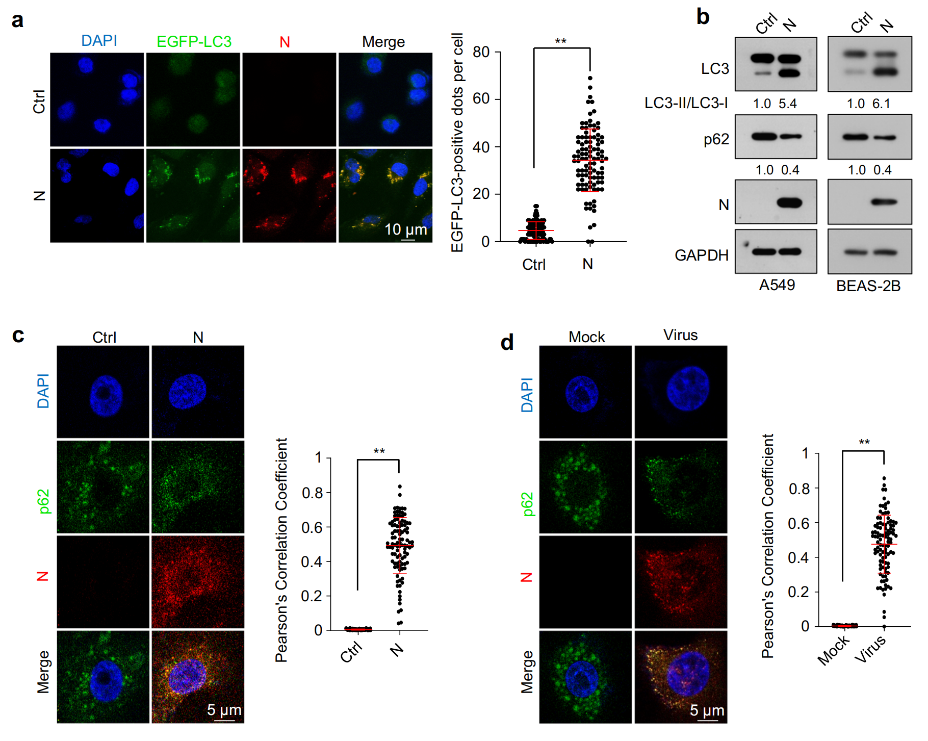 1.SARS-CoV-2核衣殼 (N) 蛋白誘導自噬降解及DNA損傷的作用機制