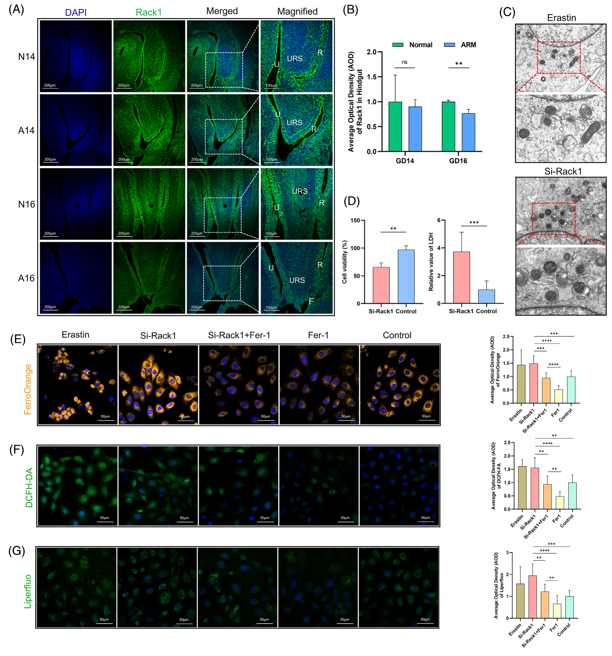 本研究中,研究者發(fā)現(xiàn)COMP+ FB生態(tài)位顯著富集了“integrin-mediated signaling pathway”和“response to mechanical stimulus”term;人和大鼠CC中ECM/細(xì)胞組成比例表現(xiàn)出明顯的空間異質(zhì)性;空間轉(zhuǎn)錄組數(shù)據(jù)和免疫熒光染色結(jié)果類似,靠近陰莖背神經(jīng)血管束的上極區(qū)域顯示出較低的纖維化水平,而遠(yuǎn)離背神經(jīng)血管束的顯示出較高的纖維化水平;空間轉(zhuǎn)錄組數(shù)據(jù)和超聲彈性成像結(jié)果都表明,APO+ FB與更柔軟的組織硬度有關(guān),而COMP+ FB與更硬的組織有關(guān);不同胞外基質(zhì)硬度培養(yǎng)下的CC FB形態(tài)不同,bulk RNA-seq數(shù)據(jù)顯示機械應(yīng)激顯著改變了FB的轉(zhuǎn)錄狀態(tài),一些參與調(diào)控脂質(zhì)代謝的基因與低機械力信號有關(guān);scRNA-seq數(shù)據(jù)分析結(jié)果顯示APO+ FB分值隨組織硬度增加而降低,COMP+ FB分值隨組織硬度增加而增加;染色結(jié)果顯示隨著組織硬度增加,F(xiàn)B中的中性脂質(zhì)和膽固醇累積降低。