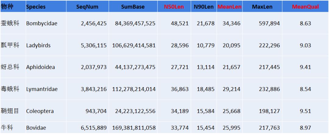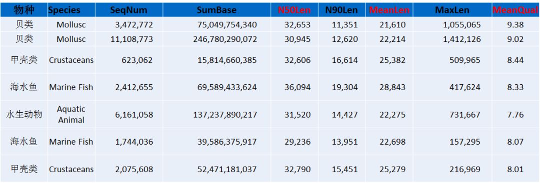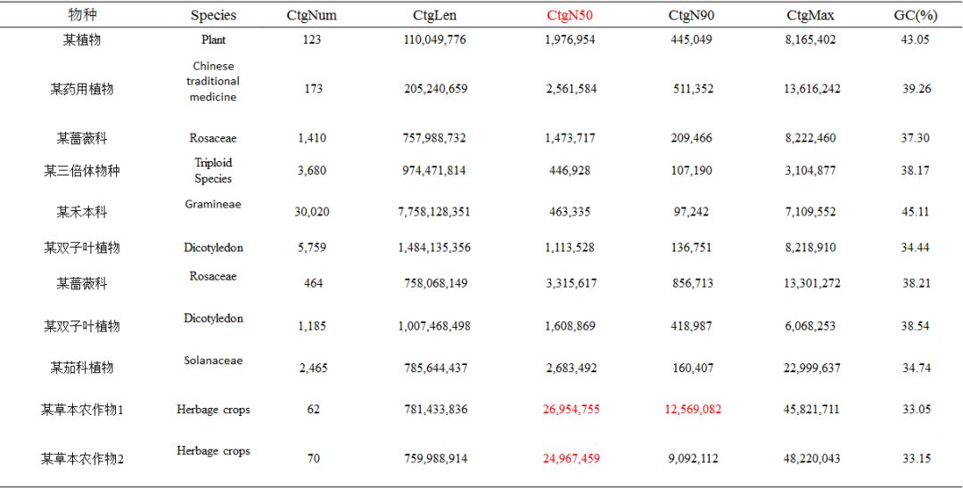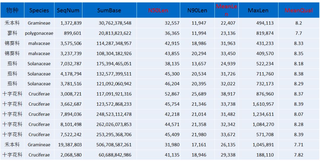 以上是總結(jié)的部分作物類、林木類、動(dòng)物、水產(chǎn)和中藥材的下機(jī)數(shù)據(jù)結(jié)果展示,從以上的數(shù)據(jù)不難看出,平均raeds長(zhǎng)度幾乎均在20Kb以上,最長(zhǎng)reads高達(dá)1.6Mb以上(不同樣品DNA抽提難易程度不同,會(huì)造成一定的影響)。