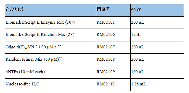 BiomarkerScript Ⅱ 1st Strand cDNA Synthesis Kit是一款專門用于反轉(zhuǎn)錄實驗的試劑盒,包含了BiomarkerScript II逆轉(zhuǎn)錄酶和兩種逆轉(zhuǎn)錄的引物。