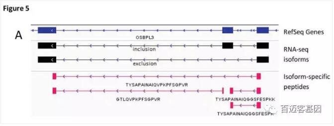 蛋白質(zhì)水平上發(fā)現(xiàn)的一些非典型的isoform翻譯成的蛋白質(zhì)可能在與常規(guī)類型的蛋白的功能不同。比如,Rac1b,相比于常見的RAC1蛋白能夠增強(qiáng)細(xì)胞存活能力。在不同的組織中,OSBPL3的isoform在RNA水平上表現(xiàn)出不同的表達(dá),表明它們可能具有不同的功能。 ?基于RNA-seq數(shù)據(jù)檢測到的少量的蛋白isoform揭示了目前蛋白質(zhì)組學(xué)的研究難點(diǎn)。mRNA 水平上發(fā)現(xiàn)的isoform在蛋白質(zhì)水平上沒有識別出來可能有很多原因,包括生物和技術(shù)層面。首先,并非所有的異常的isoform都被翻譯成蛋白質(zhì)。另外,轉(zhuǎn)錄和翻譯的動(dòng)力學(xué)相關(guān),特別是關(guān)于siRNA介導(dǎo)的下調(diào)制。同時(shí),isoform個(gè)數(shù)少也可能是剪接區(qū)域的翻譯后修飾的結(jié)果,例如磷酸化。還有一些技術(shù)上的問題限制了splice-specific peptides的鑒定,比如exclusion 變異。