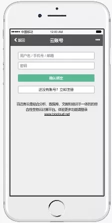 2.點(diǎn)擊屏幕右下方“更多”按鈕,選定云賬號綁定頁面,輸入云賬號和密碼