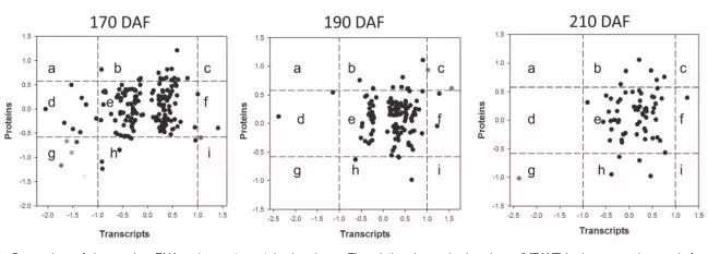 J Wu[1] 等,利用轉(zhuǎn)錄組與蛋白組的聯(lián)合分析對正常成熟甜橙和其晚熟突變體進(jìn)行了甜橙果實(shí)成熟機(jī)制的探究。通過RNA-seq在突變體與野生型中共得到628個差異表達(dá)基因;利用iTRAQ共鑒定到130個差異蛋白;通過對兩個水平結(jié)果的聯(lián)合分析獲得多個參與甜橙果實(shí)成熟的代謝通路,比如激素途徑、細(xì)胞壁合成以及糖代謝通路,同時轉(zhuǎn)錄組與蛋白組差異表達(dá)模式的不一致揭示部分蛋白參與轉(zhuǎn)后調(diào)控,為揭示甜橙成熟機(jī)制奠定基礎(chǔ)。
