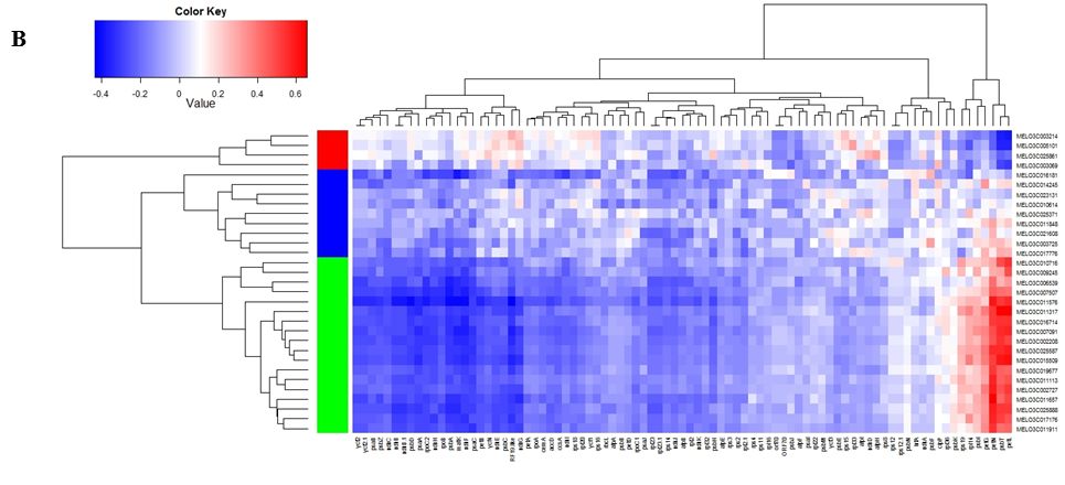 轉(zhuǎn)錄組測序:授粉10-20天,每個line取5株甜瓜的果肉混樣提取RNA,Illumina GAII和HiSeq 2000測序