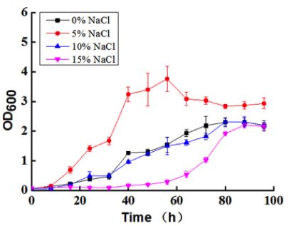 1、使用不同鹽濃度(0~15%)處理,觀察N.gilva?YIM 90087T的形態(tài)學(xué)變化、增殖、四氫嘧啶及羥基四氫嘧啶檢測(cè),進(jìn)行表型測(cè)定