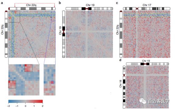 在這篇文章中,作者以一組來(lái)自22q11DS患者的淋巴母細(xì)胞樣細(xì)胞系(LCL)為研究材料,研究了染色體22q11.2和染色體1q21.1上顯著的大片段缺失CNV對(duì)表觀基因組的影響。作者使用Hi-C分析遠(yuǎn)距離染色體互作,也包括單倍型特異性Hi-C分析,使用ChIP-Seq分析組蛋白標(biāo)記,使用RNA-Seq分析基因表達(dá)模式。結(jié)果表明,染色體22q11.2上大片段的、常見(jiàn)的、與疾病密切相關(guān)的CNV以幾種不同的方式影響染色質(zhì)標(biāo)記、染色質(zhì)結(jié)構(gòu)域和遠(yuǎn)距離染色體互作以及基因的表達(dá)。這些發(fā)現(xiàn)揭示了這樣的大片段基因組缺失是如何改變?nèi)旧w結(jié)構(gòu)、影響基因組分子活性的基本機(jī)制。