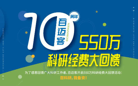 為了感謝廣大科研工作者的長期支持與信任,百邁客開啟550萬科研經(jīng)費(fèi)大回饋活動!