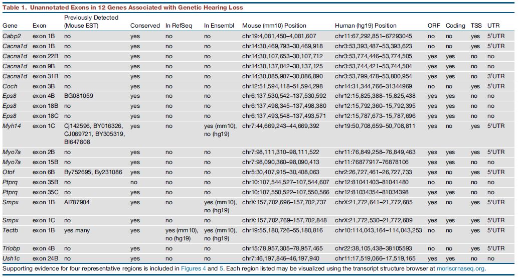 • 對耳聾相關(guān)基因的分析鑒定了迄今未被識別的外顯子;