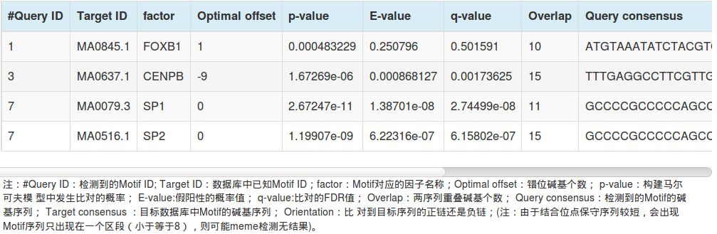 我們根據(jù)實(shí)際需求,從MEME-ChIP的原始分析結(jié)果中提取了精華,提供了較為全面完整的分析結(jié)果: