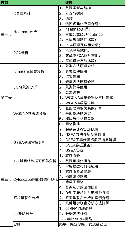 隨著測(cè)序技術(shù)的發(fā)展及測(cè)序成本的降低,轉(zhuǎn)錄組分析逐漸發(fā)展成為基一項(xiàng)礎(chǔ)的分析方法。越來越多的科研項(xiàng)目中使用轉(zhuǎn)錄組數(shù)據(jù)分析來做為分析的支持手段之一。為了協(xié)助科研工作者對(duì)轉(zhuǎn)錄組測(cè)序數(shù)據(jù)進(jìn)行深度挖掘,本次培訓(xùn)將從常用的個(gè)性化分析軟件操作入手,帶領(lǐng)大家學(xué)習(xí)轉(zhuǎn)錄組分析中常用的分析方案及實(shí)現(xiàn)方法,從而滿足文章后期發(fā)表的需求,同時(shí)也為我們生物信息科學(xué)工作者們提供一個(gè)互相交流的平臺(tái)。