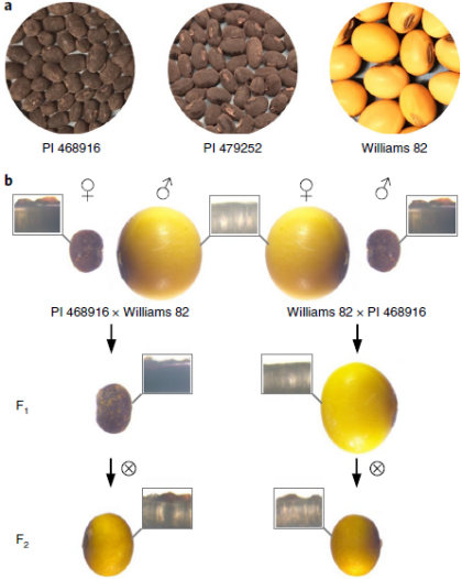 圖1.?G. max、?G. soja及其子代的種皮光澤
