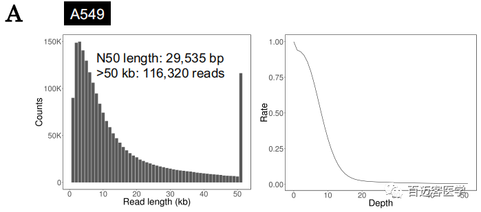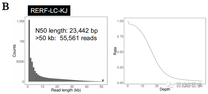 在完成對(duì)從MinION和PromethION數(shù)據(jù)的初步評(píng)估后,作者對(duì)另外4個(gè)肺癌細(xì)胞系(A549、REFF-LC-KJ、RELF-LC-MS和PC-14)進(jìn)行了MinION和PromethION測序,分別覆蓋了9.5-18.5X基因組,例如,在RERF-LC-KJ測序中,產(chǎn)生了5,986,875個(gè)reads(總堿基數(shù)57,062,227,853 bp,18.5x),Reads*長長度和N50長度分別為922,768 bp和23,442 bp。