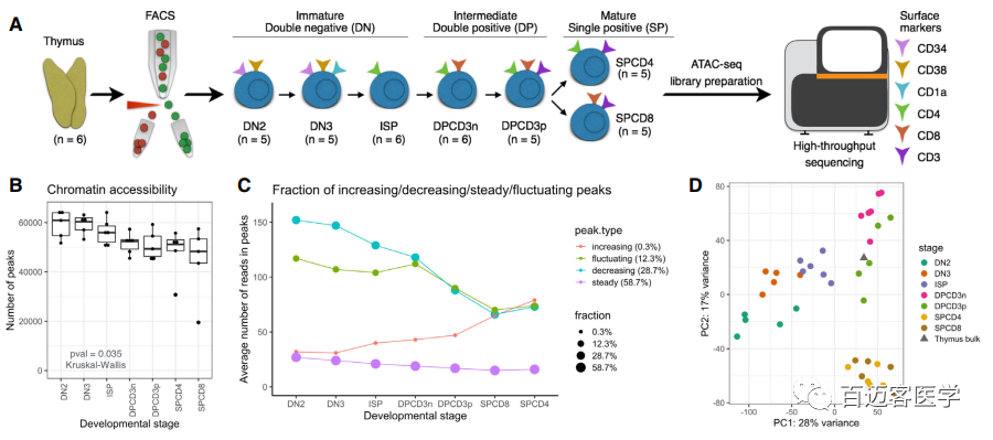 1、全基因組染色質(zhì)可及性在T細胞發(fā)育過程中逐漸發(fā)生變化