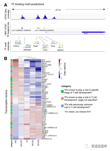 3、差異motif富集分析揭示調(diào)控T細胞發(fā)育的關鍵轉(zhuǎn)錄因子