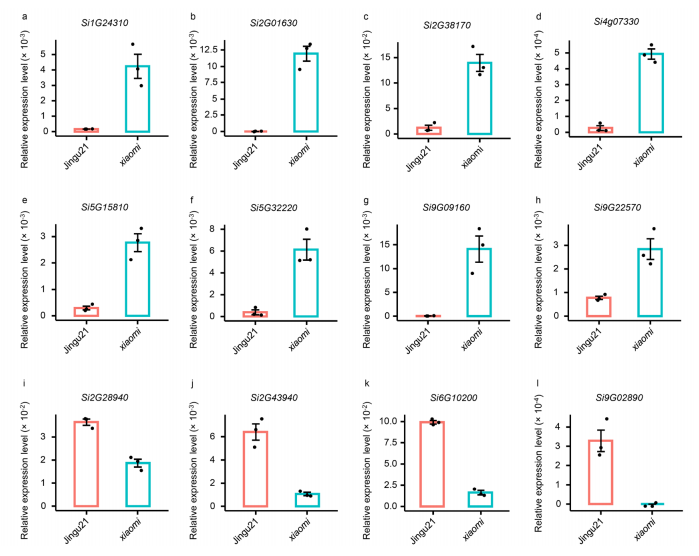 (注:這些蛋白質(zhì)編碼基因命名:Si(代表“小米”),其次是染色體數(shù)目和染色體上的基因數(shù),例如,1號(hào)染色體上的第一個(gè)和第二個(gè)基因分別命名為Si1G00010Si1G00020