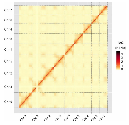 圖5 “小米”基因組Hi-C熱圖