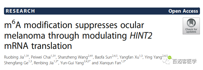 總的來說,m6A修飾在眼黑色素瘤腫瘤發(fā)生中的關(guān)鍵作用。在眼黑色素瘤樣本中m6A水平降低,提示預(yù)后不良,且整體m6A修飾的改變與腫瘤進展密切相關(guān)。機制上,YTHDF1促進了眼部黑色素瘤腫瘤抑制因子HINT2 mRNA甲基化修飾,影響轉(zhuǎn)錄后翻譯。本研究揭示了m6A甲基化修飾在眼部黑色素瘤腫瘤中功能,為后續(xù)機制研究以及藥物治療提供了新的見解。