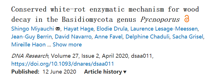 本文通過(guò)比較基因組,轉(zhuǎn)錄組和蛋白組等多組學(xué)方法對(duì)擔(dān)子菌門(mén)下的密孔菌屬的真菌進(jìn)行研究,發(fā)現(xiàn)它們?cè)谀静慕到夥磻?yīng)中存在著一些保守的酶學(xué)反應(yīng)特征,包括產(chǎn)過(guò)氧化氫酶和耗過(guò)氧化氫酶協(xié)同作用,纖維二糖脫氫酶和AA9溶解性多糖單氧酶協(xié)同作用。
