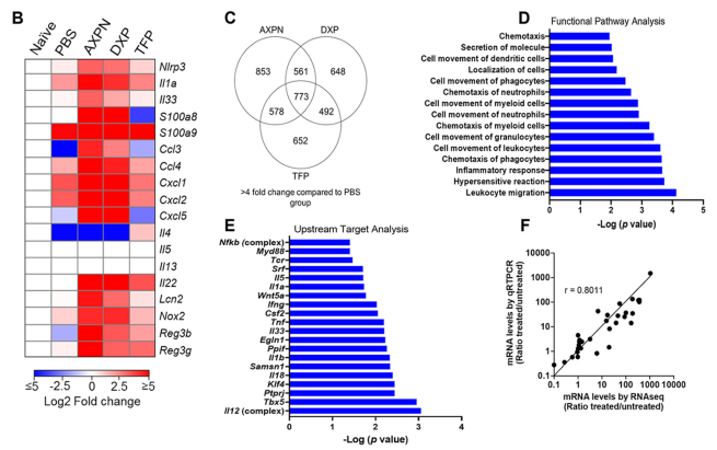 藥物介導(dǎo)的保護(hù)依賴于微生物群落的存在,其在喚起宿主防御以促進(jìn)保護(hù)性免疫作用。本文通過(guò)構(gòu)建小鼠模型進(jìn)行16S rRNA測(cè)序和轉(zhuǎn)錄組測(cè)序,發(fā)現(xiàn)藥物均增加了一些先天免疫應(yīng)答相關(guān)基因的表達(dá)。總之,先導(dǎo)藥物通過(guò)激活I(lǐng)L-33和通過(guò)宿主防御機(jī)制去清除病原體,促進(jìn)疾病減輕和小鼠模型的生存。