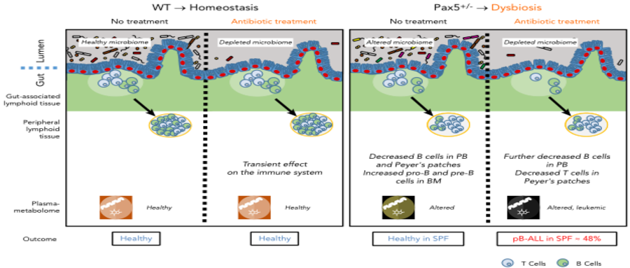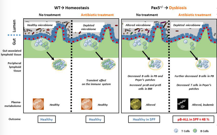 • 對(duì)pB-ALL的遺傳易感性形成了一個(gè)不同的腸道微生物群。