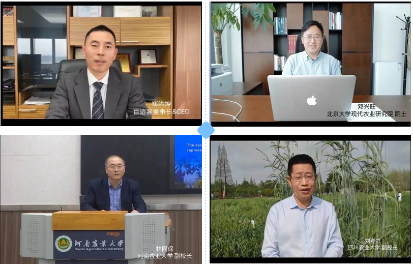 會議伊始,由百邁客生物科技有限公司董事長兼CEO鄭洪坤先生、北京大學現(xiàn)代農(nóng)業(yè)研究院 鄧興旺院士、河南農(nóng)業(yè)大學林同保副校長、四川農(nóng)業(yè)大學劉登才副校長分別為會議致辭,同時表達了對本次完成黑麥基因組的破譯的祝賀。
